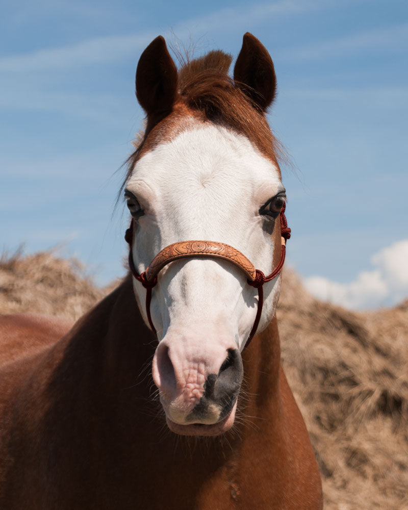 of the harness leather noseband will make impact of the aides on the nose a bit sharper. Therefore we do not recommend this halter to be used by beginners (but it can be a great showhalter for pictures as well