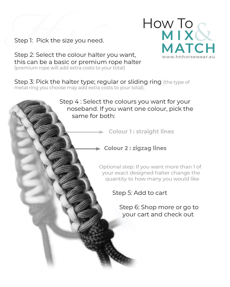 Mix & Match your favourite colours to design your own rope halter with Cobra braided noseband! The Cobra braided noseband can contain up to 2 different colours and has a softer impact on the nose.